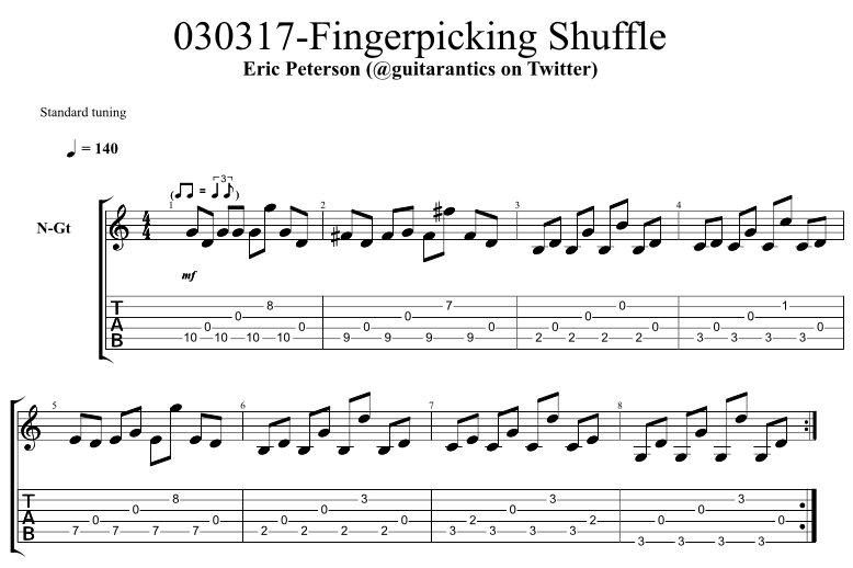 While watching sports, I often have a #guitar in my hand. The little ditties I compose are rarely the coolest thing ever (I'm watching TV), but I like to capture and catalogue them just the same. Here's a fingerpick shuffle spawned today while watching the NFL combine. Enjoy.